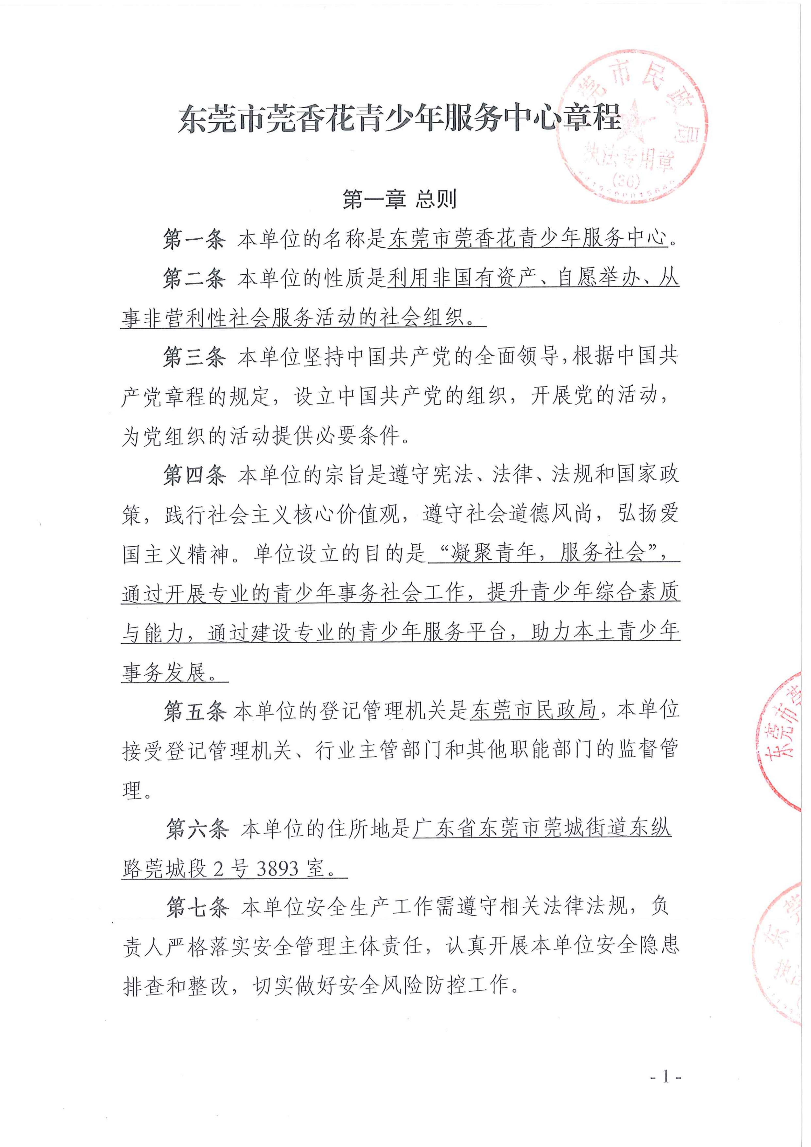 东莞市莞香花青少年服务中心章程(2024年核准)