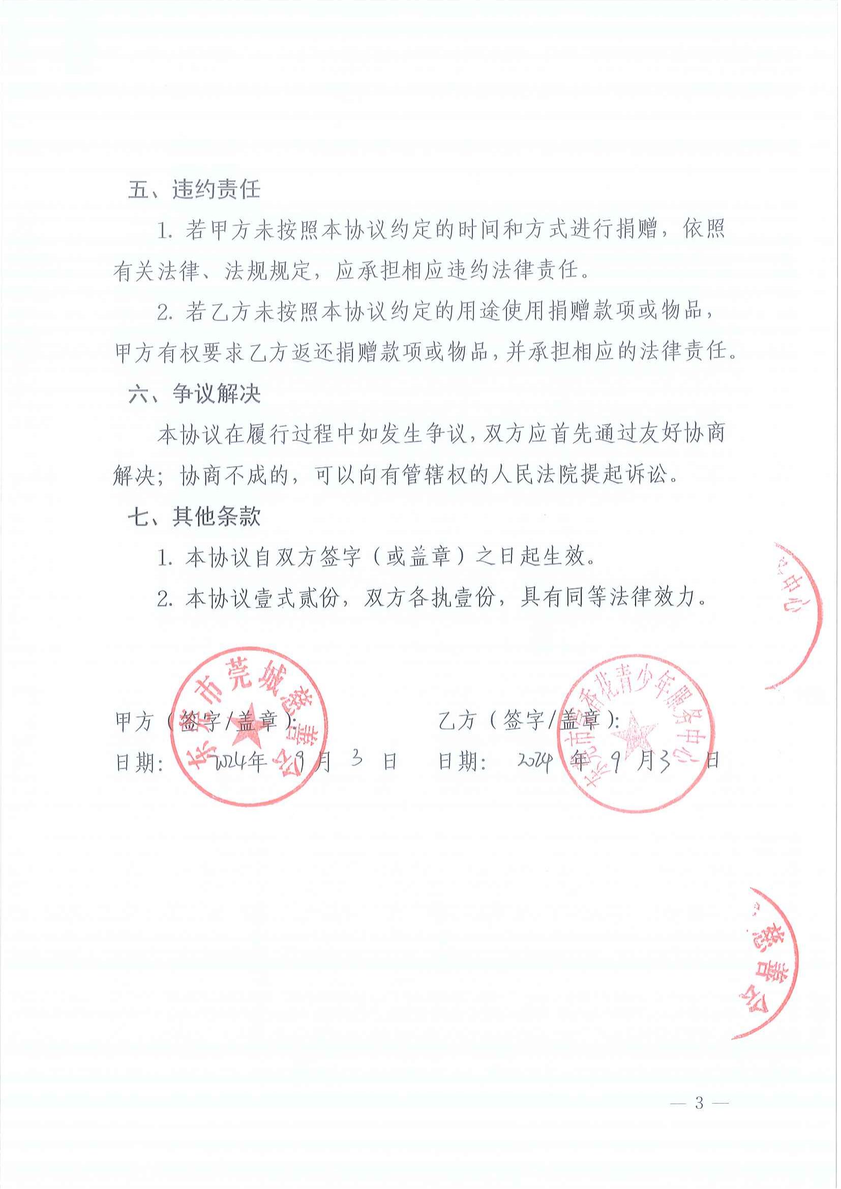 2024年9月困境青少年中秋关爱慰问活动捐赠协议