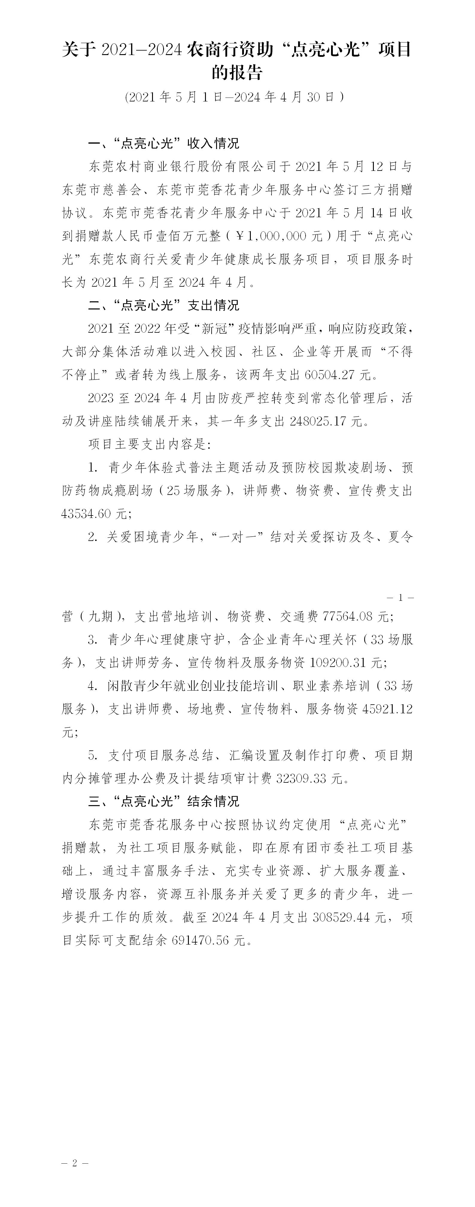 2021-2024年度农商行定向捐赠“点亮心光”项目使用和管理情况