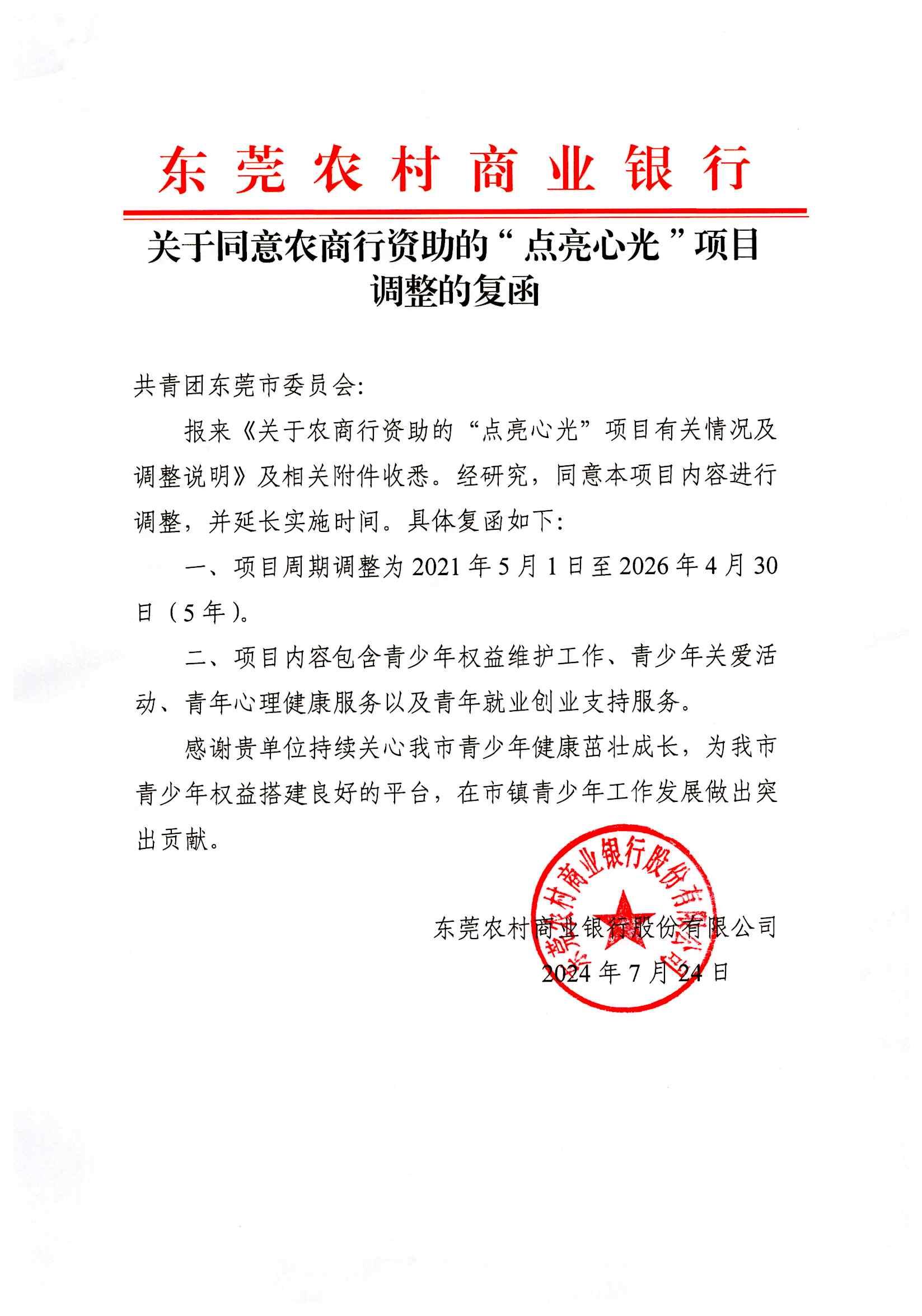2024年农商行资助的“点亮心光”项目调整复函公示